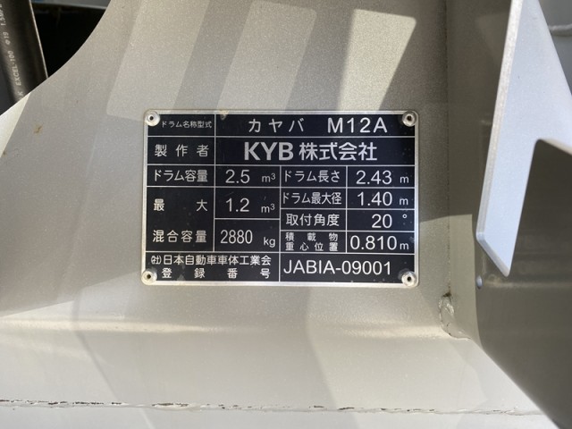 カヤバ ドラム容量2.5㎥ 最大混合容量1.2㎥ 手動ホッパーカバー 積載3,000kg