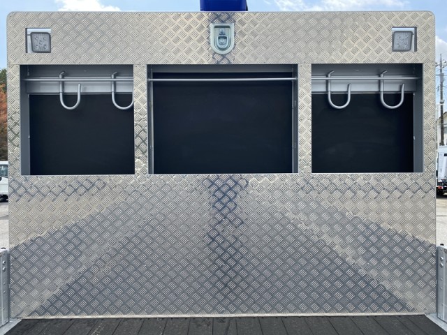 床引出式フック13対 / 床フック2対後方1ヶ / スタンション1本 / アウトリガーベース入れ / ガチャ掛け / セイコーラック / タンク300L / ラジコン1ヶ / アルコアアルミホイール / 鳥居Jフック4ヶ / 鳥居工具箱2ヶ / 鳥居フック1ヶ / ステンレス工具1ヶ / ジャッキ(角足) / セイコーラック / タンク300L / アルコアアルミホイール